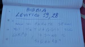 In Levitico 19,28 si legge chiaramente: “Non vi farete incisioni nella carne, né vi farete tatuaggi addosso, io sono il Signore.”